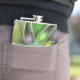 The flask itself is fine. It’s a cheap flask, obviously bought in bulk, however am prepared to overlook that. Given that it is a personalized item, I would have liked to have seen gift boxing instead of the generic packaging. Terrible printing, and/or quality. It’s a cheap, tacky vinyl. It is not cut straight and is also applied in a way that it is overhanging the bottom, causing the glue to catch on items and it will eventually roll and tear, damaging the wrap.