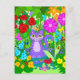 Colourful Fantasy Garden Smiling Cat Butterflies Postcard