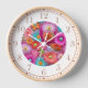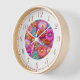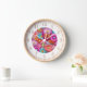 Colourful Faux Embroidered Floral Elegant Wall Clock features a trendy colourful modern faux embroidery floral in pink, purple, orange, blue, and yellow. Created by Evco Studio www.zazzle.com/store/evcostudio