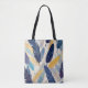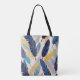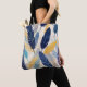 Colourful feathers in shades of blue yellow patter tote bag