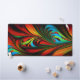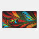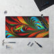 A feathery, fractal image in blue, green, orange, red, and yellow creates a beautiful desk mat.
