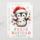 Colourful Feliz Navidad Penguin Spanish Christmas Holiday Card