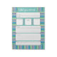 A useful notepad for teachers to stay informed about what happened in their classroom while they are absent . This one is teal with a colourful felt pens border . This design is also available in light orange .