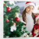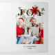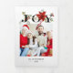 Bright, modern and clean holiday design featuring photo template, editable text fields and bold "Joy" text embellished with vibrant red and green poinsettias, berries and winter greenery.