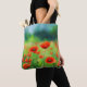 A cheerful tote bag, the perfect gift for a flower lover. A colourful landscape with a field of red poppies in vibrant watercolor. The bold colours of red, green and blue evoke a warm summer's day.