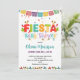 Fun and festive Fiesta Baby Shower invitation featuring bright papel picado banners, maracas, chilli peppers, cacti, and playful lettering. Perfect for a lively Mexican-inspired baby shower...
