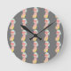 Colourful Figure Pattern on Grey Background Round Clock