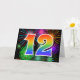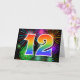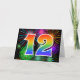 The front of this exciting, fun, and vibrant greeting card design features a colourful celebratory fireworks inspired pattern, along with the number "12" having a multicolored rainbow like gradient pattern, on a black coloured background. The inside features a custom greeting message, or could perhaps be cleared and left blank if a message is to be written by hand instead. A greeting card like this might be a fun, happy way of sending a message to somebody who is celebrating their twelfth birthday, or perhaps to a couple celebrating their twelfth wedding anniversary, or to somebody celebrating some other 12th event. [~Z0000342]