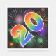 This exciting, fun, and vibrant paper napkin design features a colourful pattern inspired by celebratory fireworks, along with the number "20" featuring a multicolored rainbow like gradient pattern, on a black coloured background. Paper napkins like these could be fun to use at a party being held to commemorate somebody’s twentieth birthday, or perhaps a couple’s twentieth wedding anniversary, or some other 20th event. [~Z0000340]