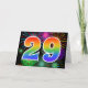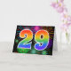 The front of this exciting, fun, and vibrant greeting card design features a colourful pattern inspired by celebratory fireworks, along with the number "29" having a multicolored rainbow inspired gradient pattern, on a black coloured background. The inside features a customisable greeting message, or could perhaps be cleared and left blank if a message is to be written by hand instead. A greeting card like this might be a fun, happy way of sending a greeting message to somebody who is celebrating their twenty ninth birthday, or perhaps to a couple celebrating their twenty ninth wedding anniversary, or to somebody celebrating some other 29th event. [~Z0000342]