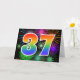 The front of this exciting, fun, and vibrant greeting card design features a colourful celebratory fireworks inspired pattern, along with the number "37" having a multicolored rainbow inspired gradient pattern, on a black coloured background. The inside features a customisable greeting message, or could perhaps be cleared and left blank if a message is to be written by hand instead. A greeting card like this could be used to send a message acknowledging somebody’s thirty seventh birthday, or perhaps a couple’s thirty seventh wedding anniversary, or some other 37th event. [~Z0000342]
