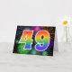 The front of this exciting, fun, and vibrant greeting card design features a colourful celebratory fireworks inspired pattern, along with the number "49" featuring a multicolored rainbow inspired gradient pattern, on a black coloured background. The inside features a customised greeting message, or could perhaps be cleared and left blank if a message is to be written by hand instead. A greeting card like this might be a fun, happy way of sending a greeting message to somebody who is celebrating their forty ninth birthday, or perhaps to a couple celebrating their forty ninth wedding anniversary, or to somebody celebrating some other 49th event. [~Z0000342]