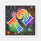 This exciting, fun, and vibrant paper napkin design features a colourful pattern inspired by celebratory fireworks, along with the number "72" featuring a multicolored rainbow like gradient pattern, on a black coloured background. Paper napkins like these could be fun to use at a party being held to celebrate somebody’s seventy-second birthday, or perhaps a couple’s seventy-second wedding anniversary, or some other 72nd event. [~Z0000340]