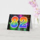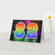 The front of this exciting, fun, and vibrant greeting card design features a colourful pattern inspired by celebratory fireworks, along with the number "82" featuring a multicolored rainbow like gradient pattern, on a black coloured background. The inside features a personalised greeting message, or could perhaps be cleared and left blank if a message is to be written by hand instead. A greeting card like this could be a fun, happy way of sending a message to somebody who is celebrating their eighty second birthday, or perhaps to a couple celebrating their eighty second wedding anniversary, or to somebody celebrating some other 82nd event. [~Z0000342]
