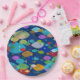 Colourful Fish Abstract Pattern Blue Paper Plate
