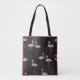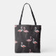 Colourful Flamingo Pattern on Black Background Tote Bag