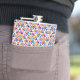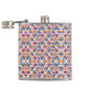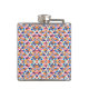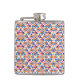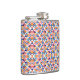 "Colourful flask with geometric pattern in blues, pinks, and oranges shown from front and left angles, conveying a vibrant, playful tone."