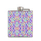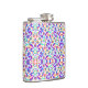 Colourful flask with intricate floral and geometric patterns in purple, blue, green, and orange. Front and side views highlight the vibrant design.