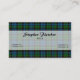 Stylish plaid business card done in the traditional colourful Fletcher tartan pattern. The front of the card has a black edged semi transparent white band, across the middle of the card, with custom black text. The back of the card is done in white, with a strip of plaid at the bottom, and black text on the white portion. Personalise all the text to suit your needs. Handsome and professional looking business card.