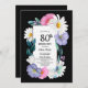 Colourful Floral Black 80th Birthday Party Invitation
