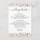 Experience modern sophistication with this watercolor details card crafted for a rustic spring or summer wedding. The design features an elegant and delicate colourful flower bloom wreaths, complemented by the inclusion of the bride and groom monogram on the back. Elevate your wedding details with this refined and personalised touch.