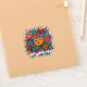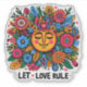 A vibrant array of colourful flowers and leaves surrounds a joyful sun with a serene expression. The artwork radiates positivity, emphasizing the message of love. This delightful creation captures the essence of nature and happiness.