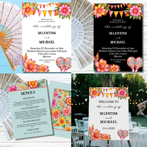 Colourful Floral Fiesta Mexican Wedding RSVP Card