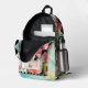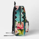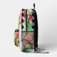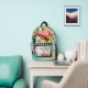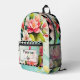 Backpack featuring colourful floral art with a black and white chequered design. The black and white details can be scaled, moved or deleted in the advanced editor if you like. You can also scale or delete the label image according to your needs.