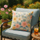 Bring vibrant colour to your space with this floral, pink, blue, and white throw pillow. Pair it with blue or yellow pillows for a spring-ready porch! This outdoor pillow is both stylish and durable, perfect for adding a touch of nature to any outdoor setting. This pillow was created from a digital watercolor image.