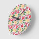 Colourful Floral Pattern Seamless Bright Flower Round Clock