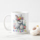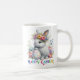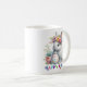 Delightful Happy Easter coffee cup showcasing an adorable baby bunny surrounded by vibrant spring flowers and a beautifully decorated Easter egg. With its colourful retro typography, this design perfectly captures the joyful spirit of the holiday!