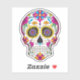 Colourful floral sugar skull no.6 illustration. Pink yellow and black.