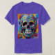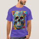The symmetrical artwork combines Mexican folk style with modern pop art flair, making it a standout piece for skull art fans, tattoo lovers, and festival-goers alike. With bright roses, hand-painted swirls, and glowing eyes that pop against the multicolored backdrop, this shirt is wearable creativity. Whether you’re honouring loved ones or just expressing your vibrant aesthetic, this tee captures the joy and reverence of life and remembrance.