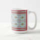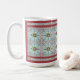 Resembling Pennsylvania Dutch designs as well as quilt squares, this adapts well to a large mug. This pattern is also available in other colours and with variations, as a cutting board, tray, lamp, magnet apron, fabric and more.,