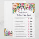 Use our colourful flower baby shower He Said She Said game with a white background to let the shower guests guess who said each of the phrases on the quiz - the mummy, the daddy, neither or both. Be sure to check out our large selection of coordinating baby shower items in our Colourful Floral baby shower collection!