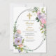 Colourful flower bouquet Baptism invitation girl in Spanish, invitación de bautizo para niña