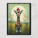 This holiday card features a cute baby giraffe in a Santa hat in a flower meadow. This giraffe Christmas card will be a favourite among giraffe lovers and animal lovers.