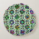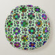 This groovy round throw pillow has a retro flower pattern with bright, tie dye colours. The cute design is made of variously sized flowers in a rainbow of shades to form a vibrant design. It makes a pretty pillow. The light green background colour is customisable on both sides.