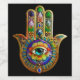 Colourful Flower Petals Turquoise Third Eye Hamsa Wine Label