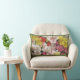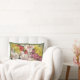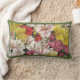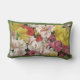 Multi-colour floral design throw pillow with green trim. Colourful bouquet of flowers.