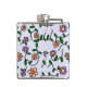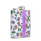 Colourful Flowers, Blue Background, Purple Hip Flask