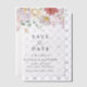 Invite friends and family in style and set the tone for your special day with this charming save the date card. Design features colourful flowers.
