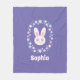 Colourful Flowers Cute Bunny Rabbit Lavender Blue Fleece Blanket