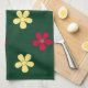 Colourful Flowers Green Floral Pattern kitchen towel.