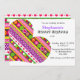 Cute and fun vector pattern with sweet, childish flowers, hearts, dots, stripes and zig-zags in pink, red, yellow, green, white and purple. Modern and trendy girly design on sweet 16 th birthday party invitation. Fully customisable, easy to personalise with your party details, names, fonts and wording.