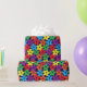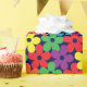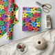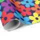 A wrapping paper with colourful flowers on a navy blue background. You can customise the size of the flowers and the background colour in an easy way.