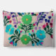 embroidered flowers in multi colours. colourful crafty cottage style floral pattern with green flowers, blue flowers, purple flowers, pink flowers, and flower buds in hand embroidery on fabric. feminine, cheerful, and elegant flowing design. pretty and sweet multi-coloured needlework with bright dainty flowers elegantly displayed in an embroidery.