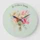 Add rustic elegance and floral charm to your home with this pretty wall clock. The clock pictures a hand-tied bouquet of fresh summer flowers in a watercolor style, on a light green background. Personalise with a name or other text of your choice, in elegant script typography. An ideal gift for kitchen and home in country farmhouse style.