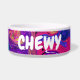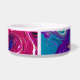 Pink, Purple, Magenta and white marbled fluid art personalised dog bowl.