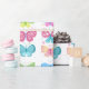 This cheerful picture shows six colourful butterflies with fun patterns on their wings. Each butterfly is different—some have polka dots, stripes, or swirls—and they all look like they're having a playful party in the sky!